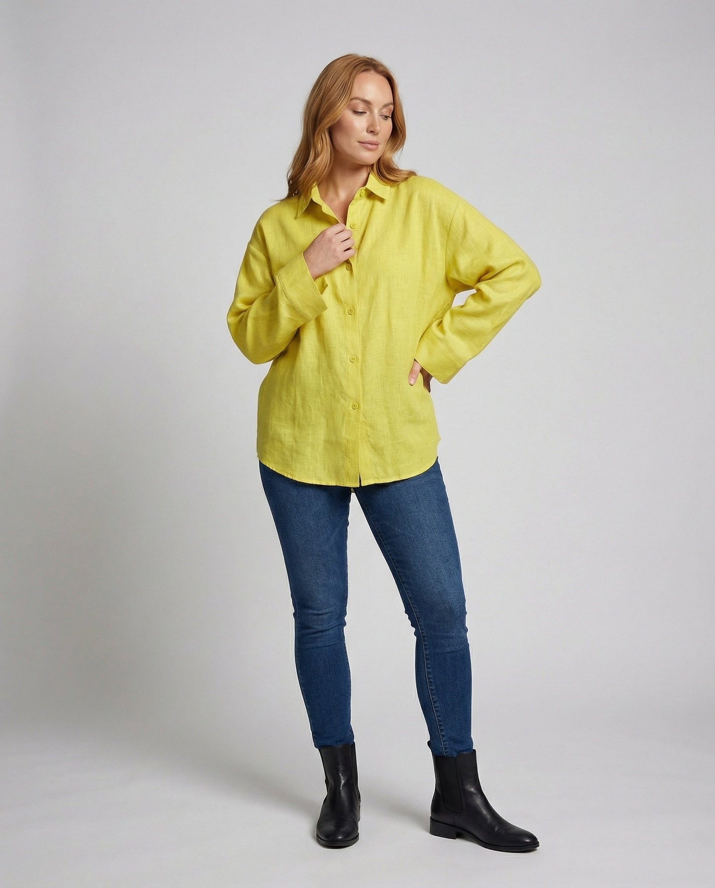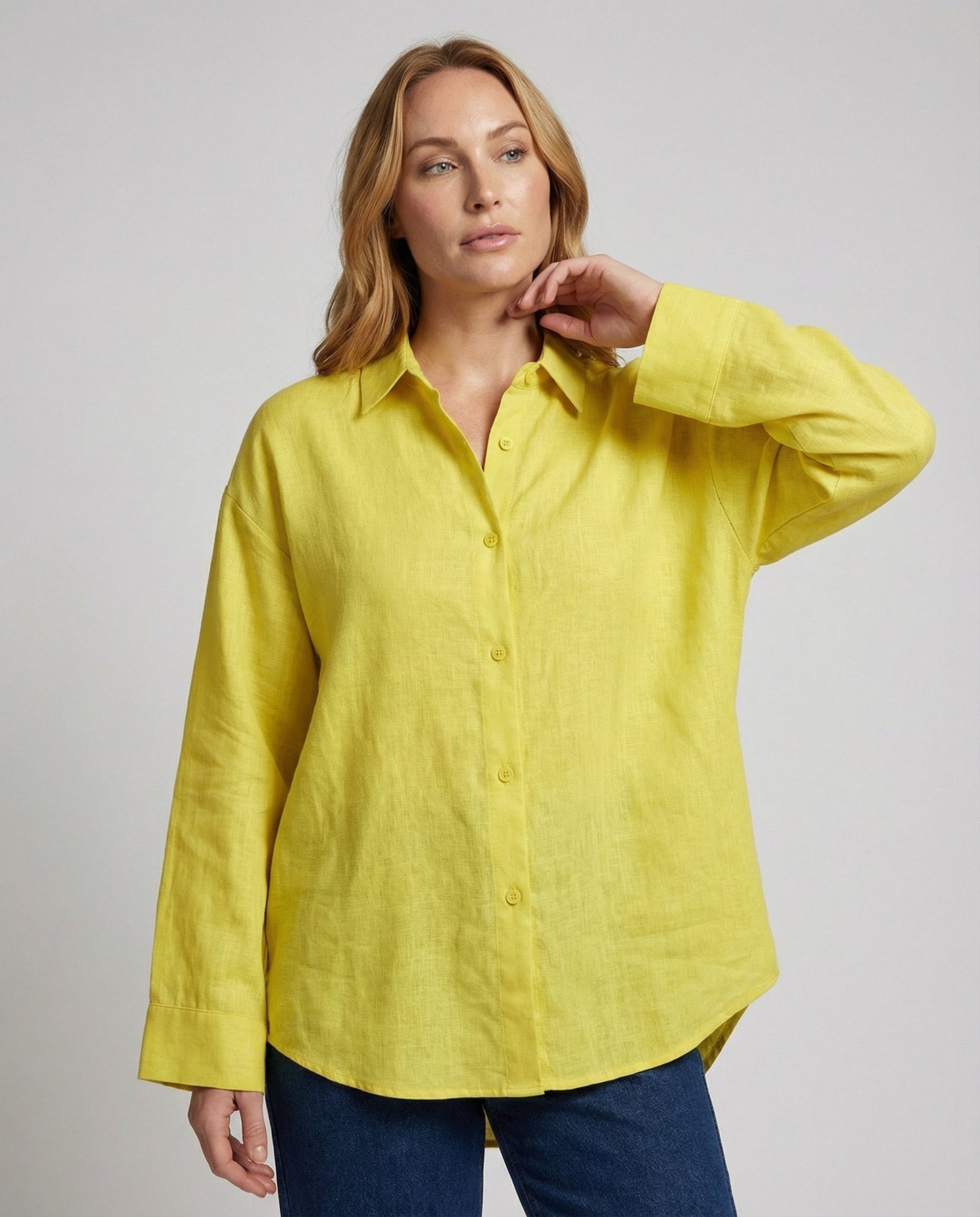 This is the linen blouse you keep reaching for all summer long. The oversized, relaxed shape sits comfortably on the body with a generous, unfussy fit that works just as well over jeans as it does with linen trousers, and the natural linen fabric gets better and better with every wear. The classic collar and simple button front keep it clean and timeless without being boring.