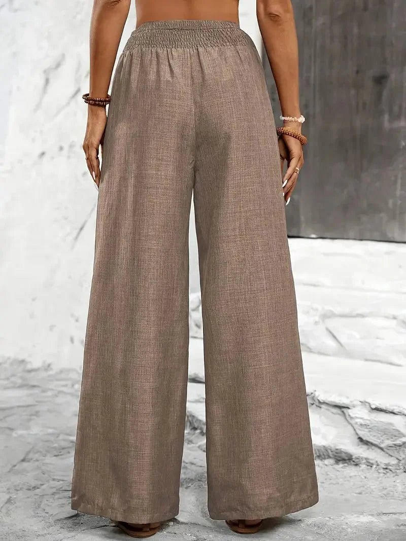 Relaxed Wide Leg Linen Trousers with Smocked Elasticated Waist